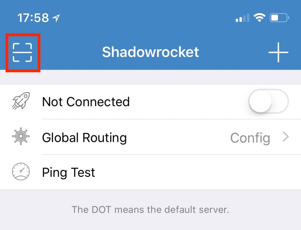 Open the ShadowRocket app and tap the barcode scanner symbol to scan the QR code shown below.